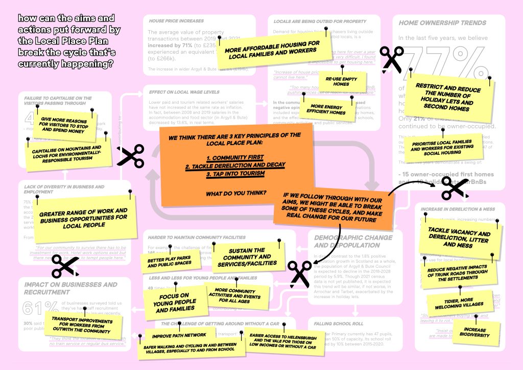 The below graphic illustrates how the aims and actions of the Local Place Plan might tackle some of the issues identified by the community, and start to break the cycle currently happening.