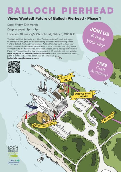 The National Park Authority and West Dunbartonshire Council invite you to share your thoughts on the developing proposals please provide comments or contact us at ballochpierhead@pagepark.co.uk