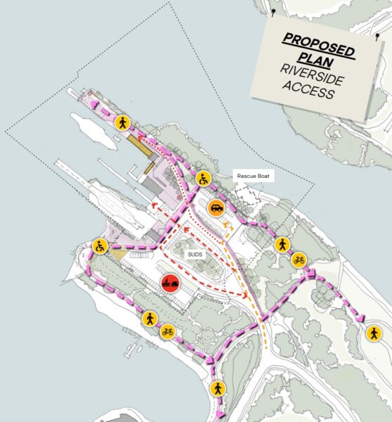 The access and movement strategy is a critical component in ensuring the Pierhead functions efficiently, particularly during peak periods. Within the constraints of the site, measures have been explored to better manage different user groups, introducing a new entrance sequence and increasing the number of waiting bays for boat users to ease congestion during busy times. Strategic control points will restrict vehicular access to the civic areas, helping to prioritise pedestrian safety and comfort. At the same time, essential service access has been maintained to ensure the Pierhead continues to meet the needs of all stakeholders.